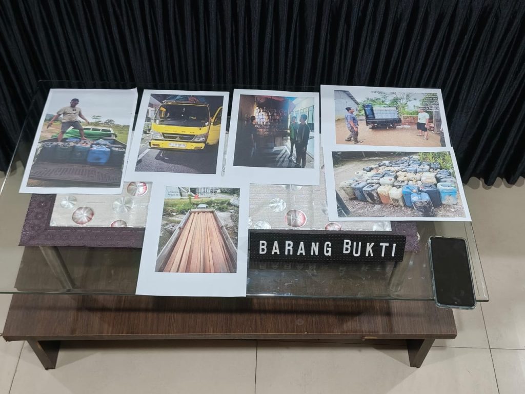“Barang bukti berupa 1 unit mobil pick-up Grand Max nopol KB 8233 WC, ±4.600 liter solar dalam 88 jerigen dan 2 baby tank.”