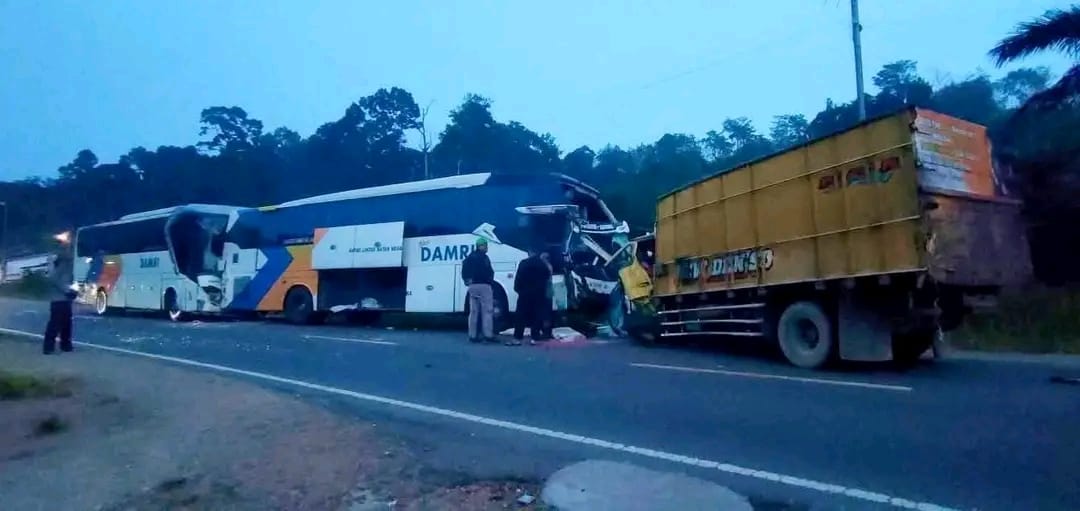 Tabrakan Beruntun Libatkan Dua Bus Damri dan Truk Pupuk di Tayan Hilir, Satu Orang Tew4s.
