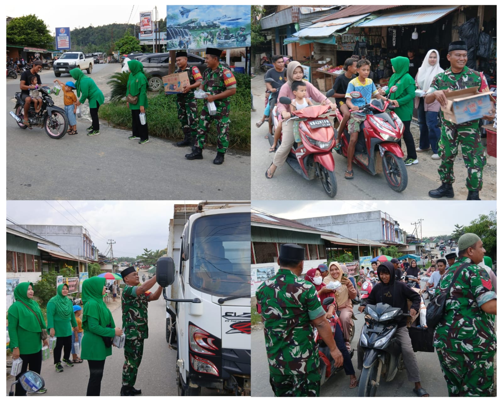 Wujud Kepedulian Sosial Koramil 1206-11/Silat Hilir Beserta Persit Kartika Candra Kirana Cabang L Kodim 1206 / Putussibau Ranting 12 Silat Hilir Berbagi Takjil Kepada Masyarakat di bulan Ramadhan 1447 H